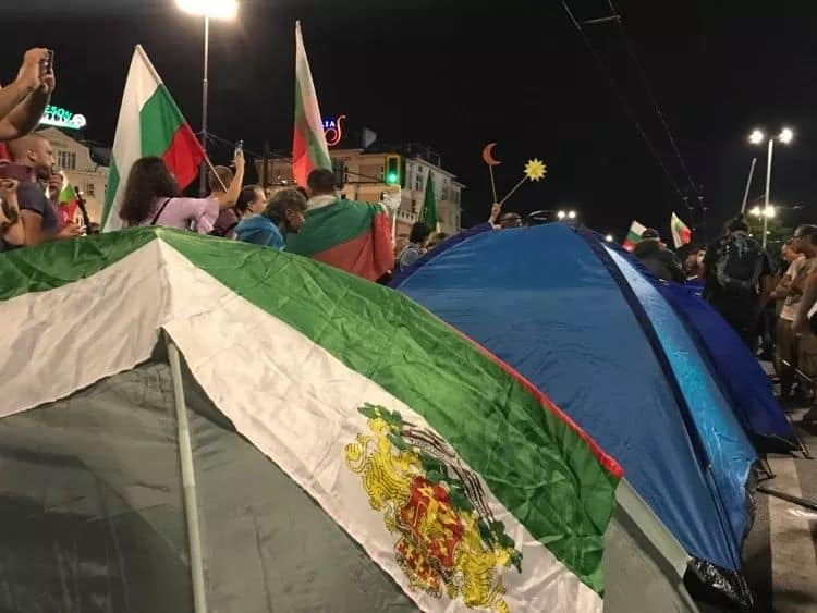 Палатковият лагер на протестиращите с искания за оставка на правителството и на главния прокурор бе възстановен снощи на Орлов мост. Хиляди граждани се стекоха отново на протест в центъра на София.