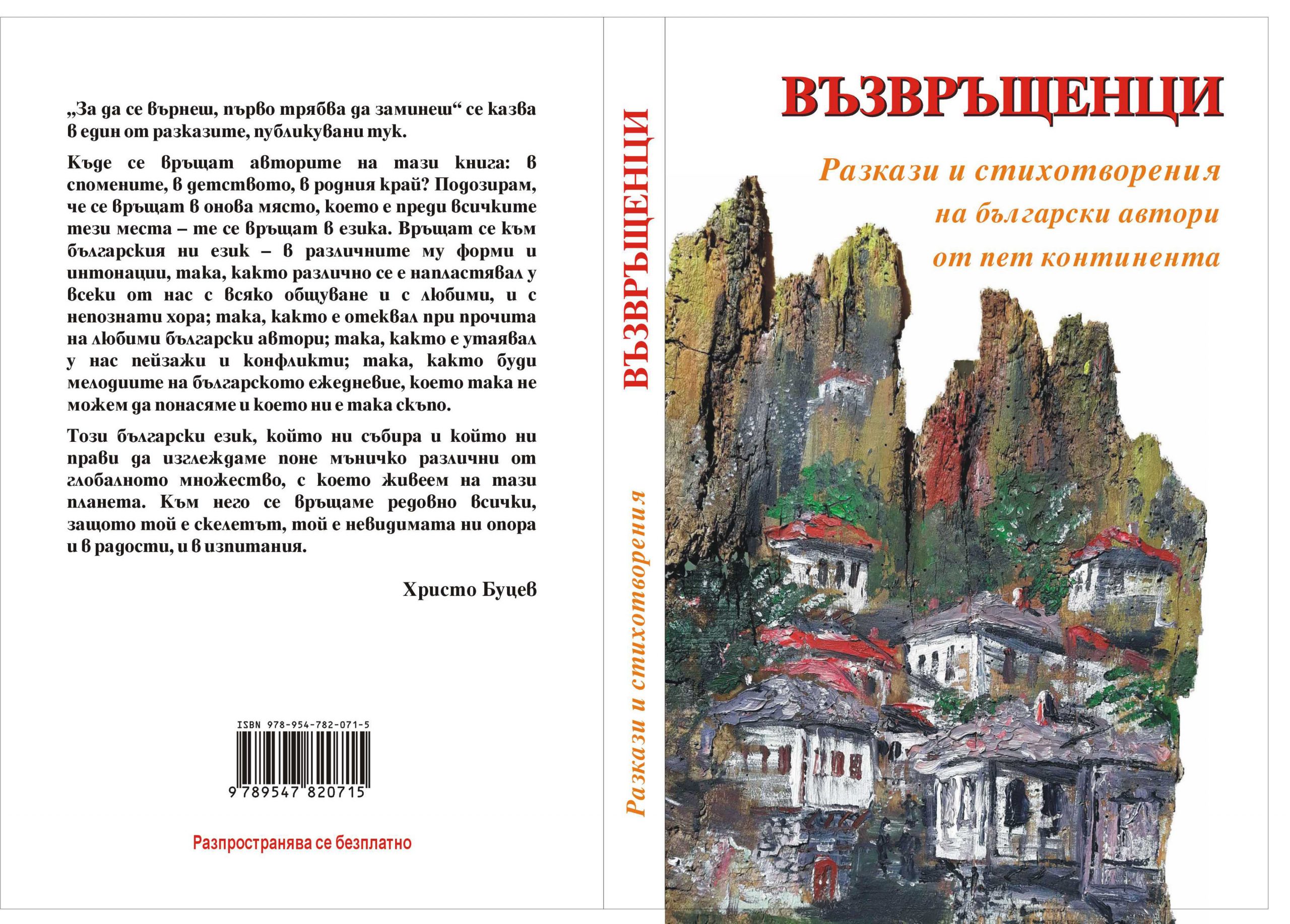 Петият литературен сборник с творби на български автори от пет континента „ВЪЗВРЪЩЕНЦИ“ скоро ще излезе от печат. Издаването на тази книга стана възможно благодарение на спомоществувателството на сънародници от различни страни. По-долу са имената на дарителите, както и дарените от тях суми.
