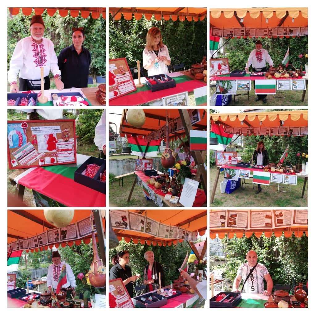 На сутрешното изложение подредихме върху българска покривка и трибагреник различни стари предмети и керамични съдове, характерни само за България. Люлин Христов обясняваше на децата как се използват кратунките, бъклицата и хлопатарите, ама не бяха такива, а медно чуканче за смилане… Децата се смееха, не им се вярваше.