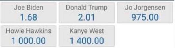 59-те подред избори за президент на Съединените американски щати ще се състоят на 3 ноември 2020 г. Ето и таблица със залози за победа преди днешните последни дебати.