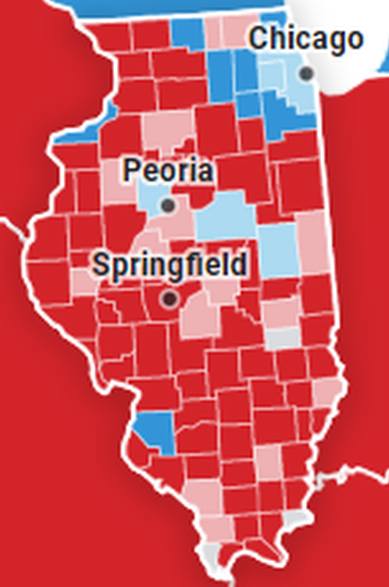От следизборните карти на гласуванията във вторник ясно се вижда как в щати като Илинойс, Уйсконсин, Мичиган, Аризона и др., които са оцветени предимно в червено с изключение на големите градове, въпреки всичко в тях победата е за демократите (на картинкaта оцветеното със синьо), и те ще диктуват бъдещите политики на целия щат.