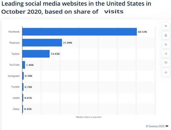 Вижте долу водещите уебсайтове за социални медии в Съединените щати през октомври 2020 г. въз основа на дела на посещенията.