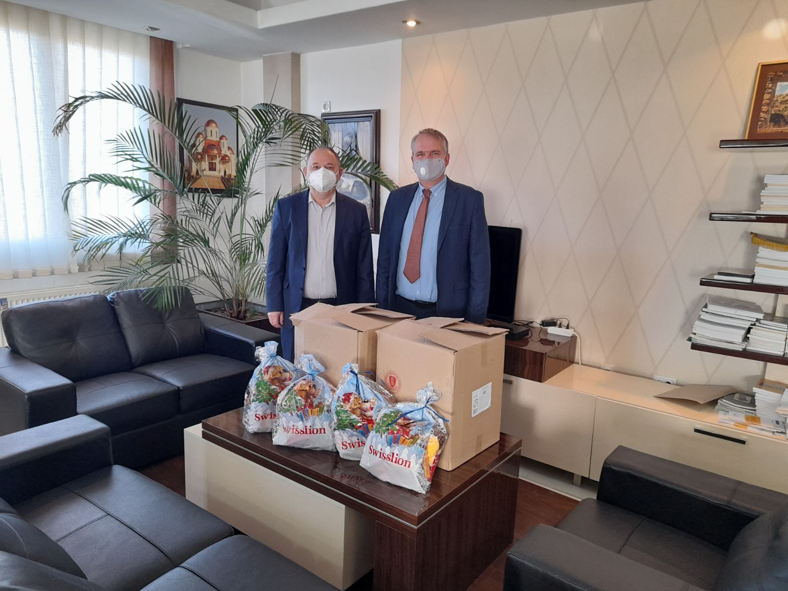 Посланикът ни Ангел Ангелов и съпругата му Биляна Ангелова връчиха подаръците на сдружение „В моя свят”, предназначени за ползвателите на Центъра за деца с проблеми в аутистичния спектър в град Охрид, както и на SOS детско селище в град Скопие, и на Съюза на слепите – Скопие.