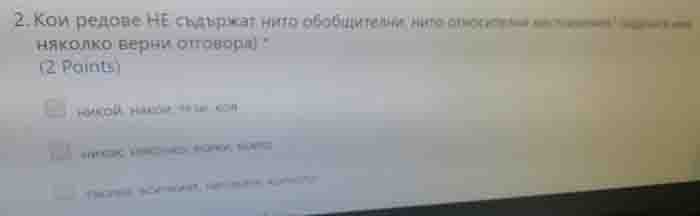 ПЪРВА ЗАДАЧА: Кой, според Вас, би могъл да се справи най-успешно и своевременно с теста по български език за шестокласници, показан по-горе? (Може да отбележите повече от един отговор, ако сте убедени, че си струва.)