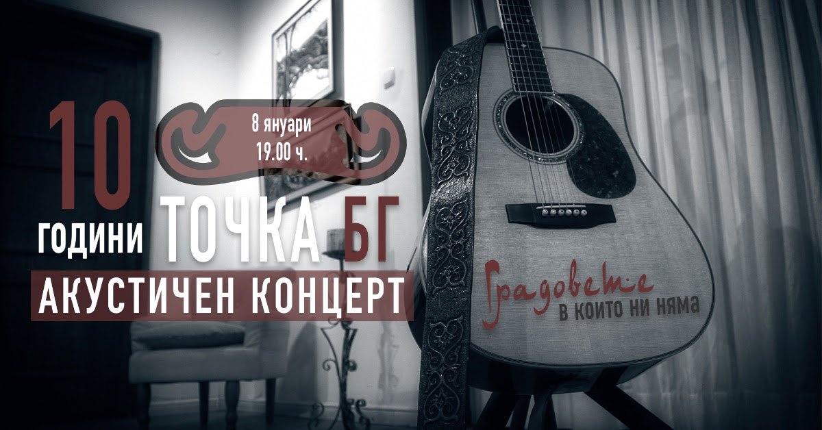 Акустичният проект за нови градски песни „Точка БГ“ отбеляза десетата си годишнина с едночасов онлайн концерт, излъчен в социалните мрежи. Концертът представи песните от новия албум на групата „Градовете, в които ни няма“.
