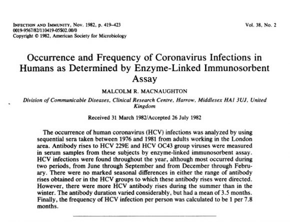 Ето някои факти от специализираната медицинска литература – изследване, проведено в Лондон от английски учени и публикувано в списание на Американското общество за микробиология (American Society for Microbiology) още през 1982 г. И тези учени са установили, че всеки от нас се заразява с някакъв коронавирус на всеки 7,8 месеца! Това е положението! Но те не са спрели дотам. Доказали, че имунитетът след преболедуване продължава 3,5 месеца!