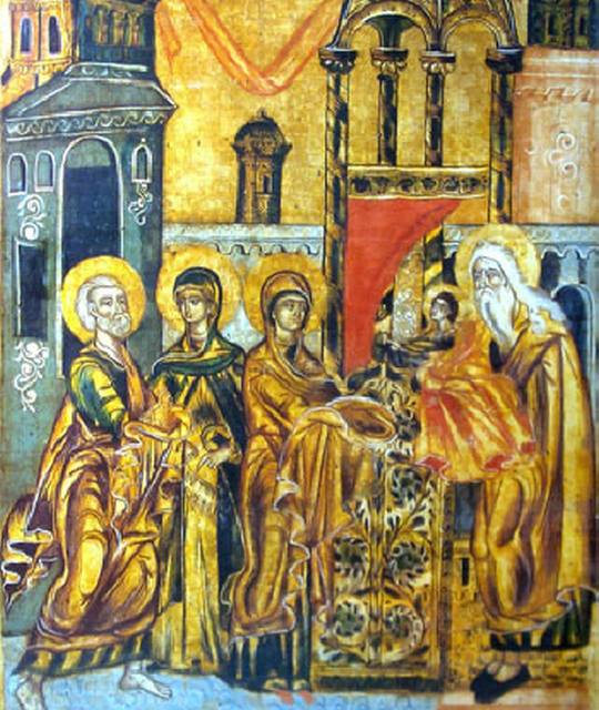 Четиридесет дни след раждането на Иисус Христос света Дева Мария донесла своя Младенец в Йерусалимския храм според Мойсеевия закон, който заповядвал всяко първородно от мъжки пол да бъде посвещавано или представяно пред Бога. Това било установено за спомен от избавянето на израилските първородни от смъртта, която поразила всички египетски първородни от човек до добитък. Затова всеки първороден като собственост на Господа бил длъжен с определена от закона цена да бъде откупен. А след навършване на 40 дни от рождението, майката на първородния принасяла в жертва на Бога агне. Ако майката е бедна, принасяла гургулица или два гълъба. Смята се, че Богородица закриля бременните жени, майките, раждаемостта и семейството.