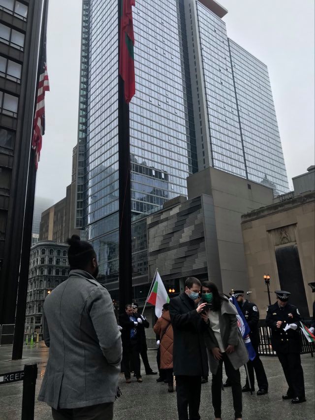 И тази година Генералното консулство на Р. България в Чикаго организира тържествено издигане на националния трибагреник в центъра на Чикаго, по повод националния празник на България 3-ти март.