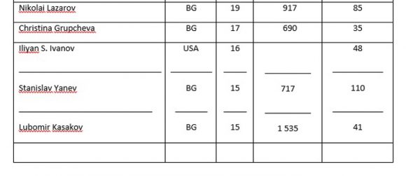 През 1997 г. бе публикувана статията ми „Един американски професор не трябва да струва 1795 български”. Тогава обявените от БНБ валутни курсове за 12 септември 1997 г. показваха, че един щатски долар струва 1795 български лева. Казано с други думи, български принос в науката е значително по-обективен оценъчен критерий, отколкото принос в българската наука. Следователно, когато един български учен в биомедицинските науки Ви каже, че има „повече от 450 публикации“, не му вярвайте! Погледнете го в „огледалата на науката“ – електронните бази данни Pubmed/Medline (USA National Library of Medicine), Scopus, Web of Science на Thomson Reuters и ще видите голямото разминаване (Таблица 1). Нобелистите по физиология или медицина Джордж Паладе, Кристиан де Дюв, Рита Леви-Монталчини и Алберт Клод имат съответно „само“ 236, 174, 135 и 91 публикации (по данни на Pubmed). Разбира се, те са професори без “минимални национални изисквания“ за „доктор на науките“.