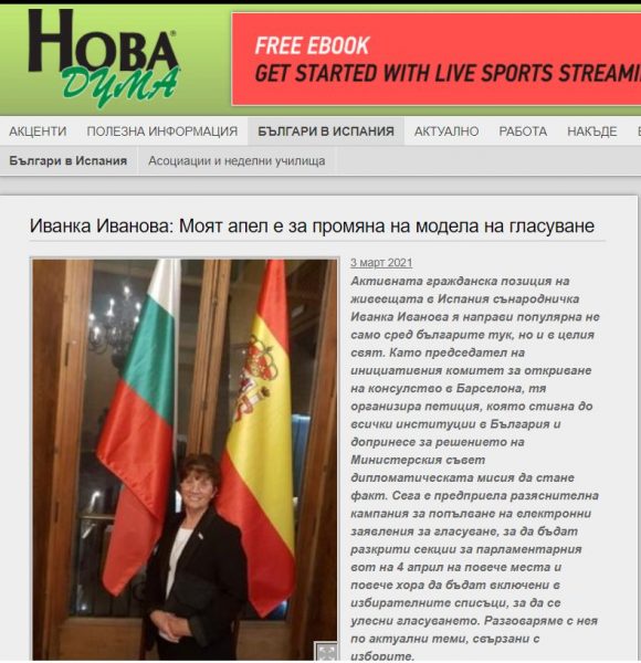 През месец март т.г. във в. „Нова дума“ – Испания излезе интервю с Иванка Иванова, под заглавие „Моят апел е за промяна на модела на гласуване“. За изминалото време вече виждаме първия резултат – всенародна петиция, към която може да се включите и Вие. Как може да бъде направено това, можете да видите най-долу в този материал.