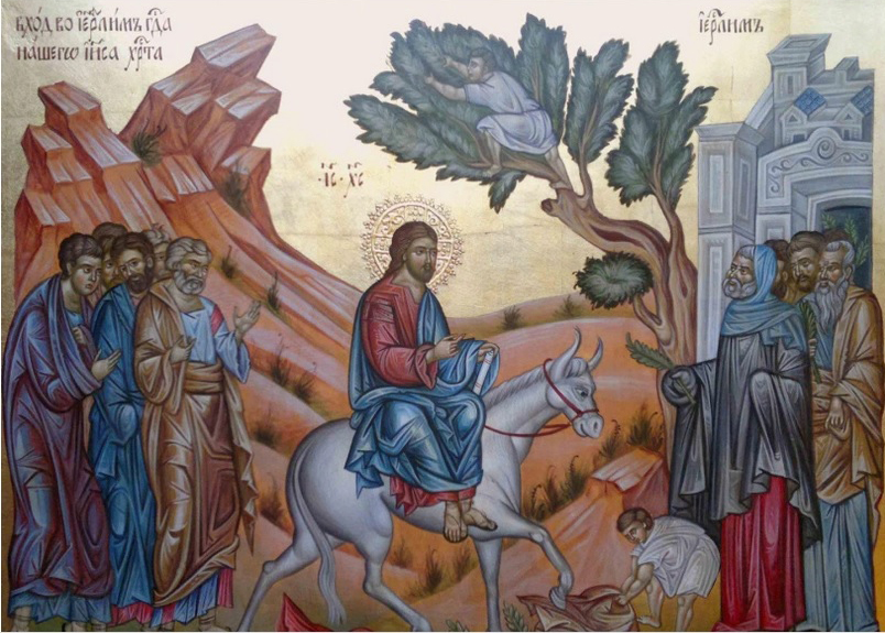 Хората, виждайки в Иисус Христос Спасителя, възторжено размахвали палмови клонки и хвърляли цветя пред него, като пеели: „Осанна! Благословен Идещият в име Господне, Царят Израилев”.