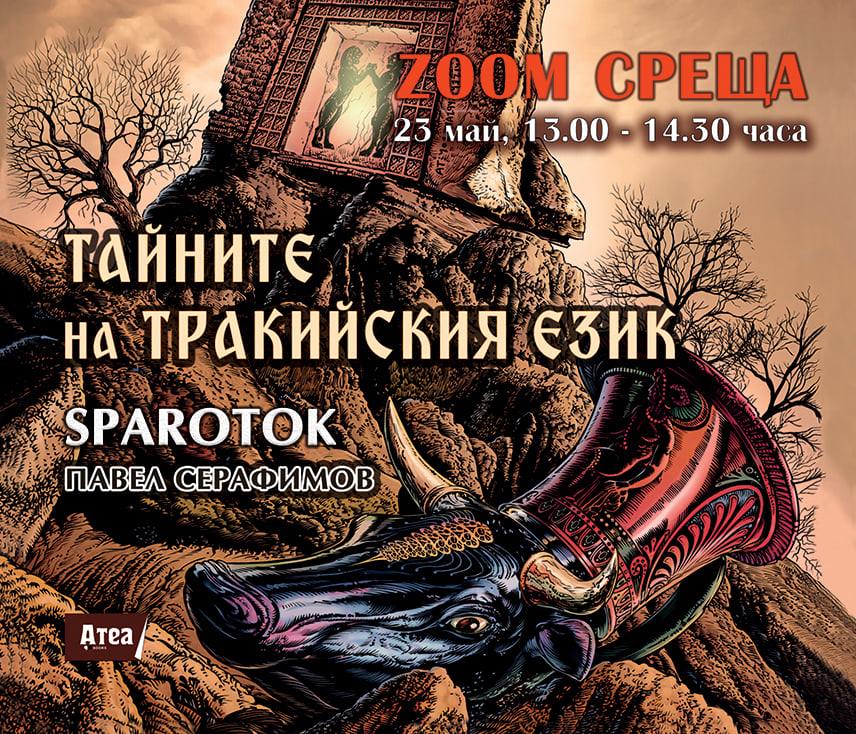 Издателство АТЕА организира Zoom среща „Тайните на тракийския език“, с участието на изследователя на тракийската цивилизация и автор на двете книги от поредицата „Тайните на тракийския език“ – „Посланията на древните надписи“ и „Орфей проговаря“ Павел Серафимов.