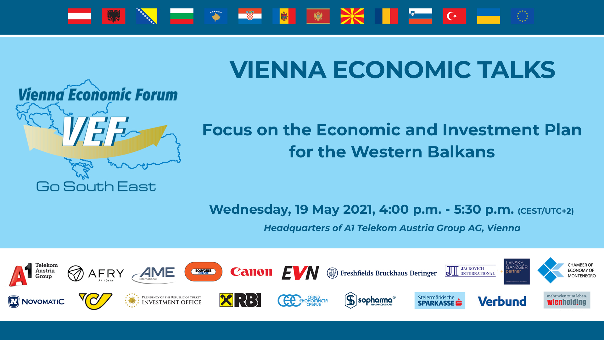 Виена Економик Форум (Vienna Economic Forum), утвърдил се като Европейската икономическа платформа със седалище във Виена, ще бъде с фокус “Икономическия и инвестиционен план на ЕК за Западните Балкани”. Събитието ще се проведе на 19 май 2021 г. с основен участник в дискусията Н. Пр. Оливeр Вархели (Olivér Várhelyi), еврокомисар по разширяването.