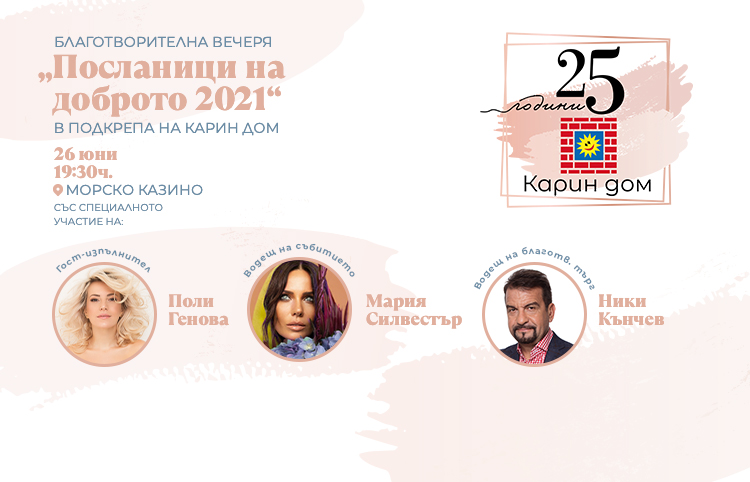 По повод 25 годишния юбилей на Карин дом – покана за първата по рода си благотворителна вечеря „Посланици на доброто“, в подкрепа на новия терапевтичен и образователен център.