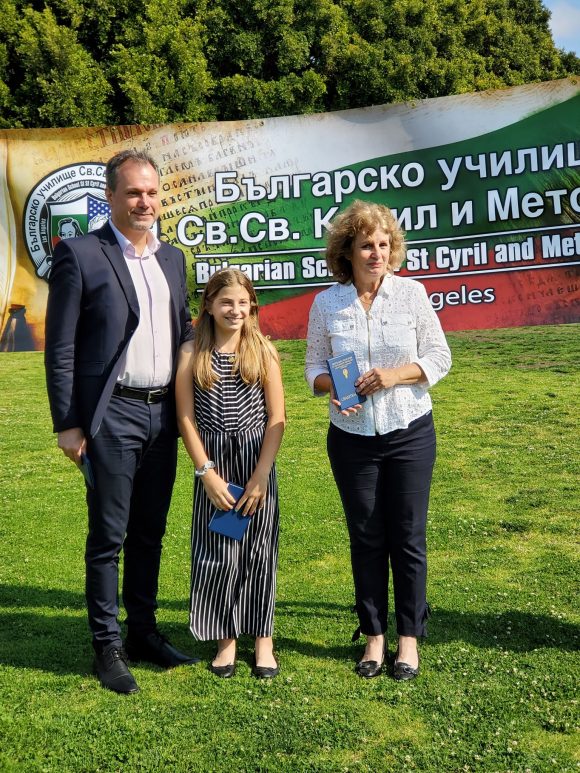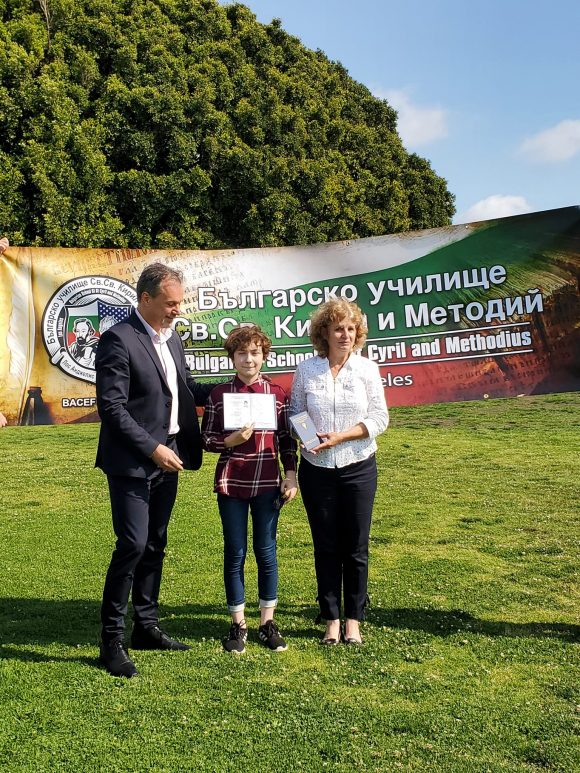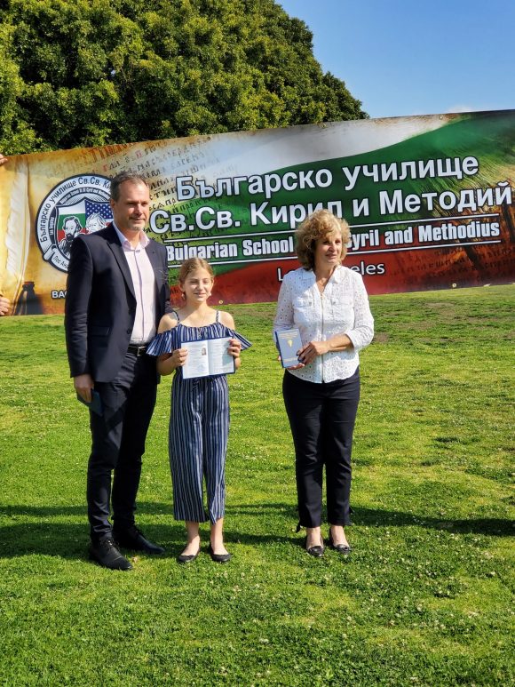 В навечерието на най-духовния празник 24-ти май осем ученици от БУ „Св. св. Кирил и Методий“ в Лос Анджелис получиха своите дипломи от Департамента за езиково обучение (ДЕО) към СУ „Св. Климент Охридски”, за успешно издържан тест за владеене на български език по програмата ,,Печат за двуезичност” – Seal of Biliteracy.