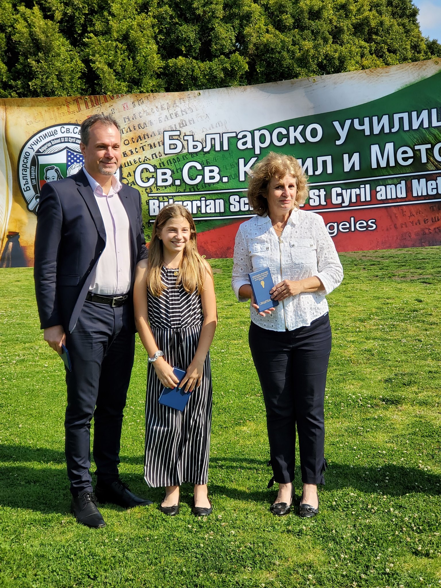 Генералният консул Бойко Христов и директорката на училището Живка Костова връчиха свидетелствата на импровизирана, но много мила церемония, във Veteran’s Memorial Park.
