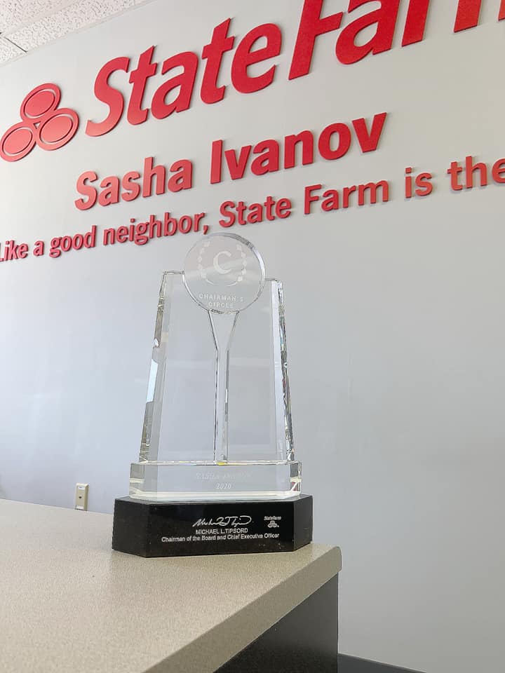 Sasha Ivanov State Farm Insurance Agent е отличена с една от най-високите награди на State Farm за 2020-та година.