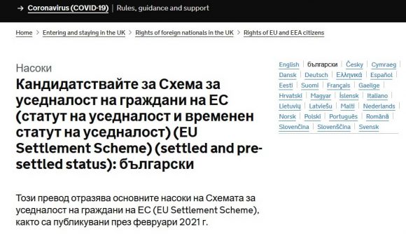 МВнР призовава българските граждани, предвид краткия оставащ срок до 30 юни 2021 г. за кандидатстване за статут по Схемата за уседналост, да подават своите документи пред съответните британски власти.