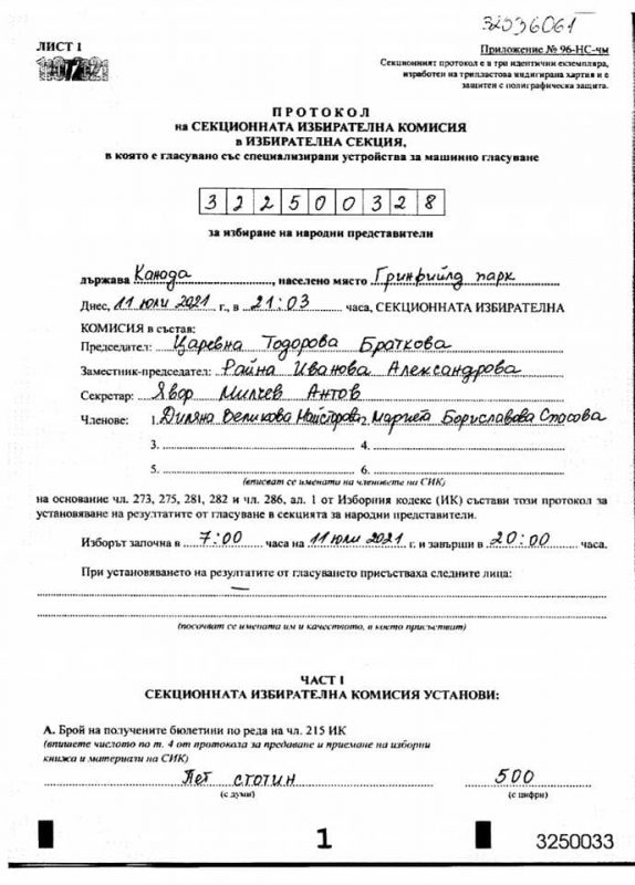 „Пиша Ви за нередности в избирателна секция СИК № 322500328 в Гринфийлд парк, Монреал, Канада. От изборния ден досега, на страницата на ЦИК фигурира протокол с явни нередности. Писано е до ЦИК и ЦИК отказва да даде отчетност и прозрачност, както и да свали и поправи протокола. Даниел Кътев е писал до ЦИК. Няма отговори и реакции. Грешният протокол продължава да фигурира на страницата на ЦИК. Вероятно се касае за явни злоупотреби и вписване на лични данни и подписи на хора-фантоми.