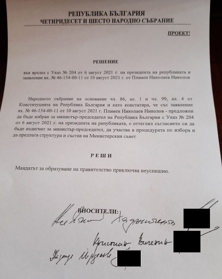 Бел. ред.: Авторката е народен представител от гражданската квота на „Демократична България“. Коментарът й е написан по-рано днес, преди все пак да се приеме решение, с което се обявява мандатът за съставяне на правителство на “Има такъв народ” за неуспешен. Решението, гласувано със 106 гласа “за”, 60 гласа “против” и един “въздържал се”, мина в отсъствието на депутатите на ИТН – те още в началото на заседанието заявиха, че напускат пленарната зала, за да не участват в “този фарс”. Последва и отказ на депутатите от ГЕРБ да участват в гласуването, като така се провали първият опит за приемане на решението. Когато кворумът бе възстановен след кратка почивка, то бе успешно гласувано.