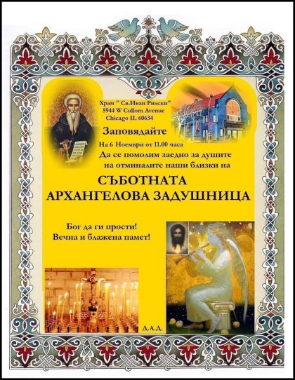 . На 6 ноември, събота, от 11 часа, в църквата „Св. Иван Рилски Чудотворец“ в Чикаго ще...