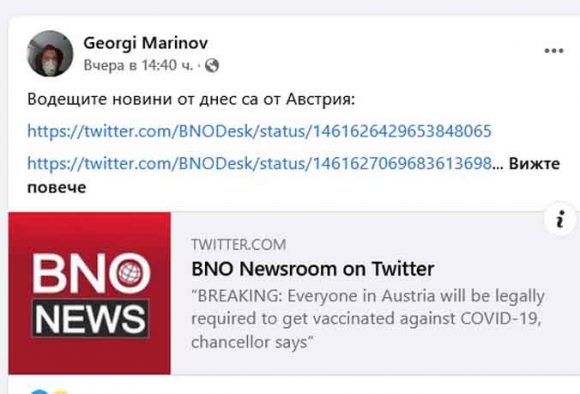 И това е довело до втората голяма новина от Австрия днес – че от 1-и февруари 2022 г. ще има легално изискване за ваксинация на цялата популация. Което е световен прецедент – никъде до момента не е имало такова тотално нареждане за ваксинация. Как точно това ще се осъществи на практика, предстои да видим. А на това какво точно може да се очаква, дори и да се постигне тази цел, ще се спра накрая.