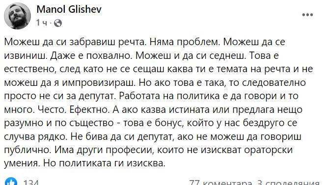 Така че въпросът не опира до объркването на едно младо момче на парламентарната трибуна. Много хора на различни възрасти се притесняват да говорят публично. Забележете колко добри писатели са много слаби оратори.