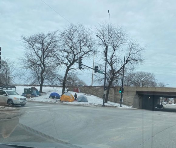 От студа в Чикаго не се боят и някои от бездомниците, които си живеят в палатки под мостове или кръстовища, както се вижда на последната снимка, направена на пресечката на N Lake Shore Dr & W Irving Park Rd.