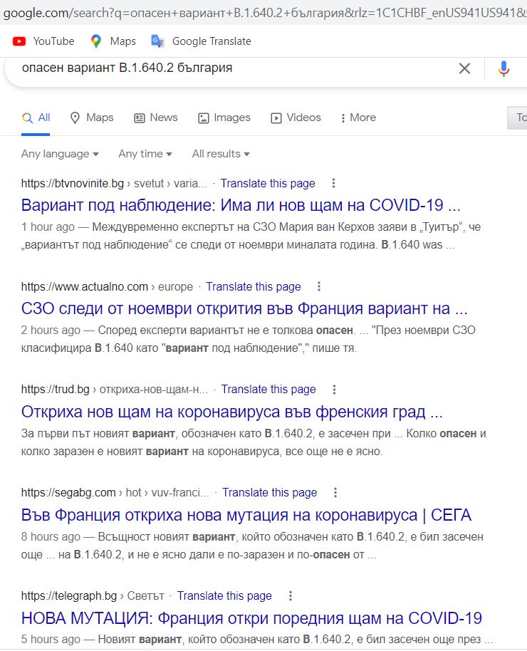 В посочените на снимката линкове се алармира за нова изключително опасна версия на B.1.640.2, която се разпространява активно във Франция, вече е открита във Великобритания, вече е успяла да постави почти 1000 души в болницата, включително над 300 на Механична вентилация.