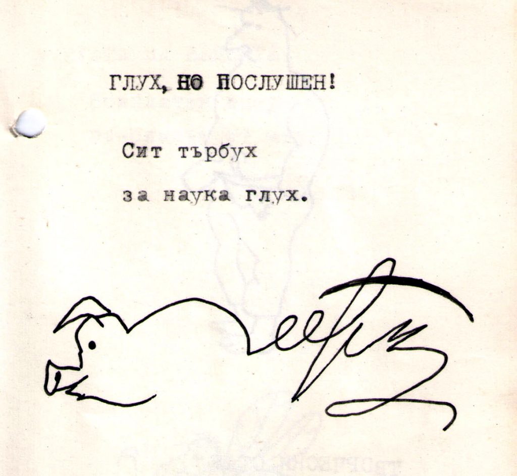 Карикатура - Борис Димовски, епиграма - Радой Ралин (из "Люти чушки")