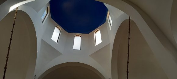 Онзи ден, докато се разхождахме на юг, изведнъж зад един завой се откри най-величествената сграда в района – огромна, за нашите мащаби, сръбска църква, кръстена на Св. Сава, чиито кубета разнасяха светлина надалеч. Влязохме, запалихме свещичка. Тишина, хармония и само погледите на Онези над нас – там. Отгоре и от иконите ни гледат.