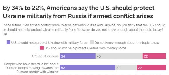 От тези, които правилно са определили местоположението на Украйна, 50% са били за понататъшна военна помощ на Киев, а въвеждането на строги санкции срещу Русия е било подкрепено от 58%. Сред тези, които не са могли да намерят Украйна на картата, съответно 37% и 41% са отговорили „За“ на тези въпроси.