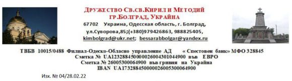 Дружество на бесарабските българи „Св. св. Кирил и Методий“ – гр. Болград, Украйна, е изпратило на 28 февруари обръщение до президента Румен Радев, председателя на НС Никола Минчев, премиера Кирил Петков, външния министър Теодора Генчовска, председателя на Комисията по външна политика Венцислава Любенова, председателя на Комисията по политиките за българите извън страната Антоанета Цонева и др. В обръщението се казва: