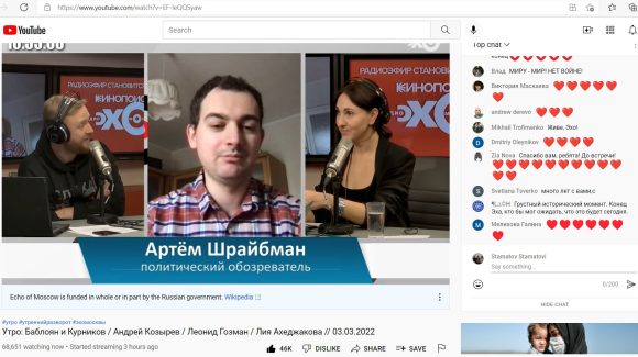 На 1 март 2022 г. Роскомнадзор ограничи достъпа до информационните ресурси на радиото и го изключи от ефира, заради „недостоверно отразяване“ на войната в Украйна.