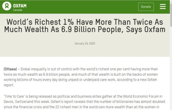 Според Уикипедия и worldometers.info, населението на Земята днес е 7,9 милиарда. Но колко хора се сещат, че горният 1% (един процент) най-богати в света има над два пъти повече богатство от 6,9 милиарда души от всички държави? Както твърди Oxfam (вж. снимките), глобалното неравенство е извън контрол.