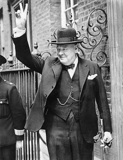 Друг пример е използването от Уинстън Чърчил на знака V за победа. Има доказателства, че окултистът и шпионин Алистър Кроули е взел гръко-римски знак за победа и по време на работата си за британската MI5 препоръчва знака на Чърчил, като фолио срещу използването на свастиката от Хитлер. Освен това беше забележително успешен, дори изразен в музика, използвайки форма на морзова азбука като призив за оръжие през цялата война. За пореден път символът задейства цялото население да реагира несъзнателно и да се обедини за борба.