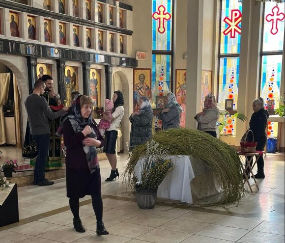В двете български православни църкви, “Свети Иван Рилски” в Чикаго и “Света София” в предградието Дес Плейнс, стотици вярващи отидоха за да чуят празничната литургия, да получат причастие и осветени върбови клонки. За разлика от предишни години, забелязахме голямо количество украински вярващи, които вероятно не са пожелали да посетят близките руски църкви.