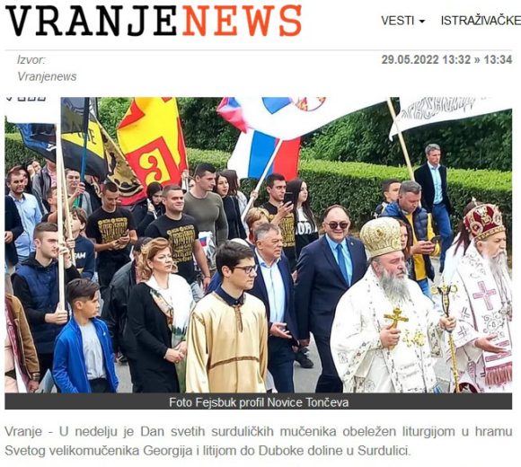 Линкове към публикации в местни медии за двудневните антибългарски литийни шествия, академии, литургии и пр. в Сурдулица – вж. тук, тук, тук, тук.
