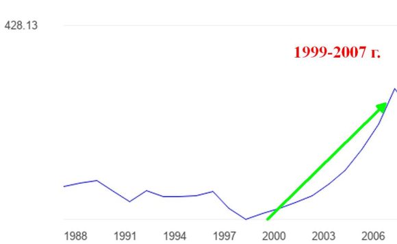 Нека погледнем тази графика показваща развитието на Русия до края на първите му два президентски мандата (законните):