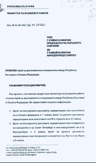 Според тази официална информация на МВнР, в България има 40 руски дипломати - 32 в посолството на...