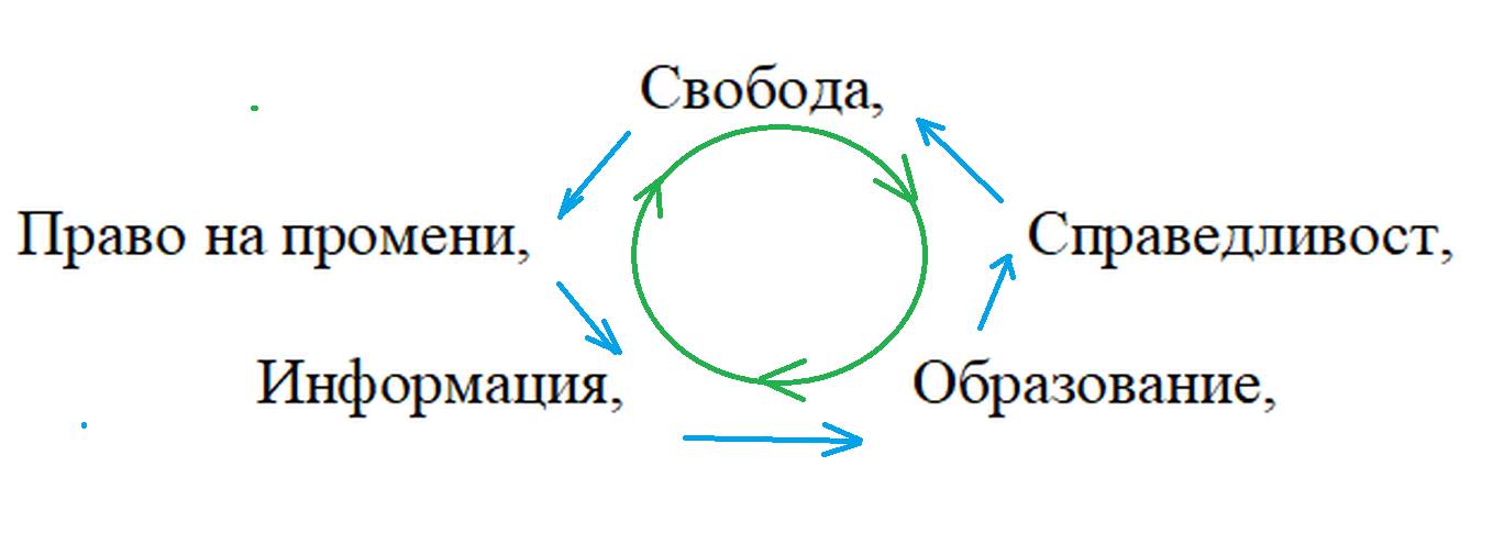 След независимостта, това би трябвало да е основният кръг от цели – всички останали ще се постигнат, като следствие от него. Погледнете картинката и ще се убедите, че независимо откъде тръгнете в кръга (по посока или срещу часовниковата стрелка) резултатът ще е възможен и успешен.