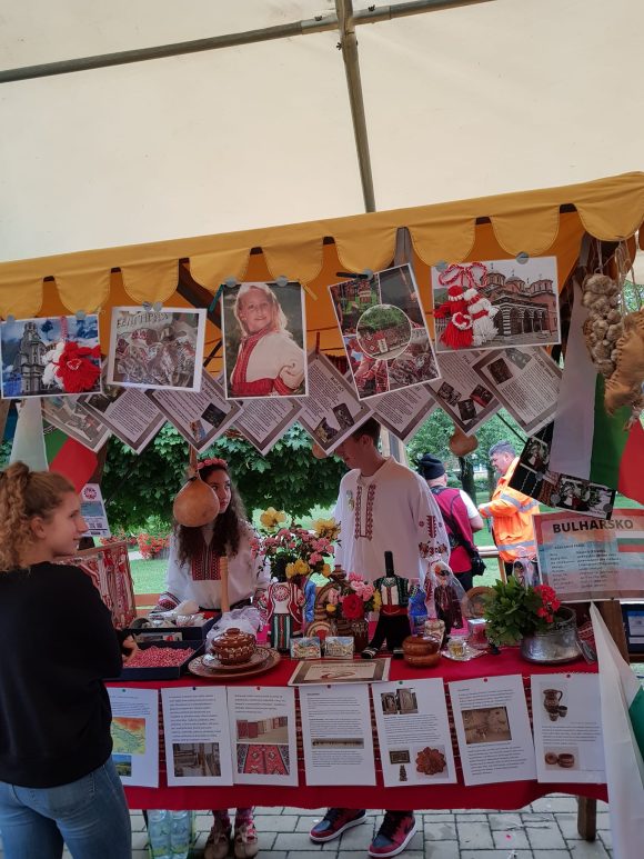 Българският щанд на сутрешното представяне бе богато украсен със сувенири, кукли с национални носии, презентиращи плакати на чешки език, които децата четяха, мостри от малки парфюми с българска роза, с които децата се ароматизираха и много им хареса.
