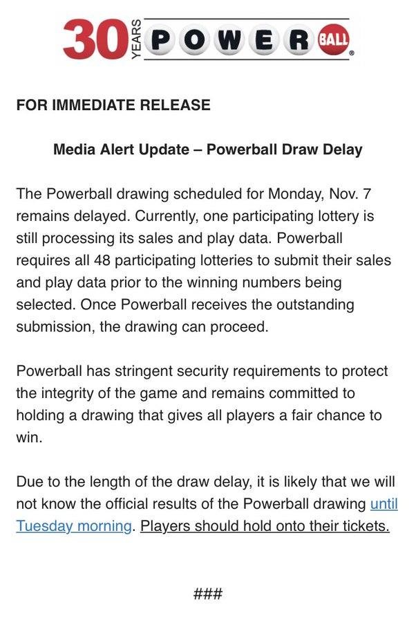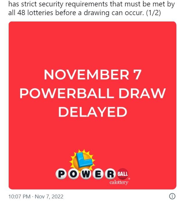 At 10:59 p.m., the tweets were flying about the delay. In a statement, lottery officials said the delay was caused by „a participating lottery needing extra time to complete the required security protocols. “