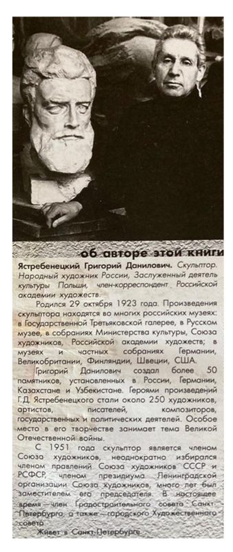 Ваятель Григорий Данилович создал более 300 скульптур художников, артистов, писателей, композиторов, государственных и политических деятелей. Особое место в его творчестве занимает тема Великой Отечественной войны (1941–1945), участником которой он был. Произведения Г.Д. Ястребенецкого находятся в более чем 40 русских музеев и частных коллекций в Германии, Великобритании, Финляндии, Швеции, США.