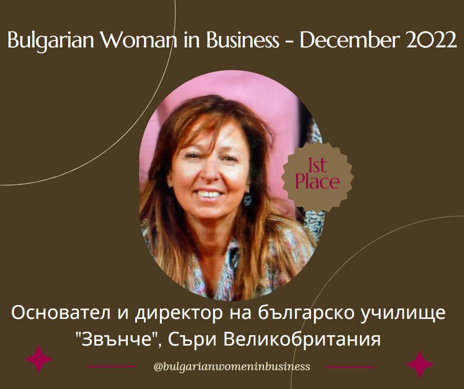 По-долу можете да прочетете за г-жа Филка Ананиева – основател на БНУ „Звънче” в Съри – Сърбитън/Сътън във Великобритания и член на Управителния съвет на Асоциацията на българските училища в чужбина.