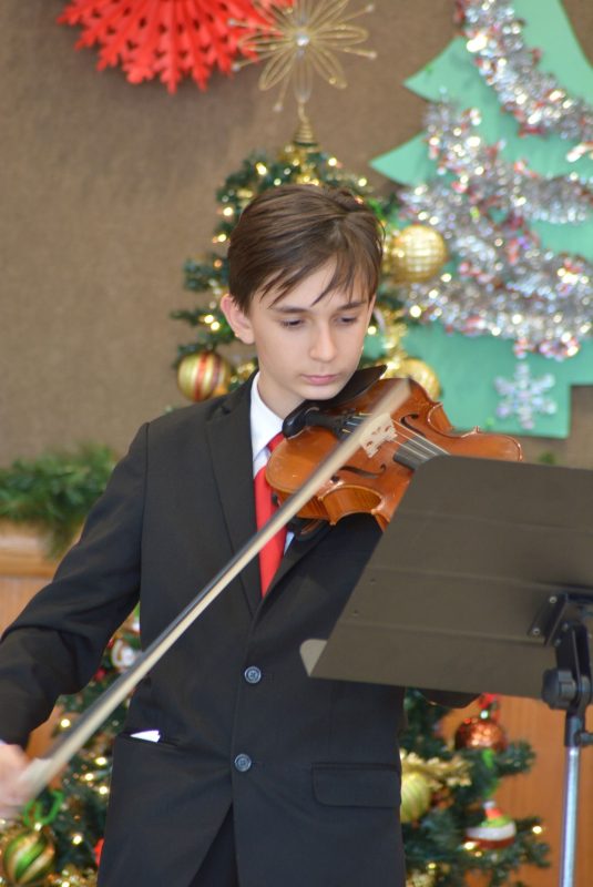 Малките коледари пък пяха за Коледа и наричаха за здраве и късмет. За празничната атмосфера допринесоха музикалните изпълненията на Иви – флейта, Кали – тромпет и на пиано – Сашо и Мишо. Габи и Мони от 5 клас забъркаха „Коледна магия“ за всички в залата. А как се празнува Коледа по света ни разказаха чрез викторина учениците от 4 и 5 клас. Виви от 5 клас ни развълнува с изпълненията на песните „Бяла Коледа“ и „Коладе, ладе“.