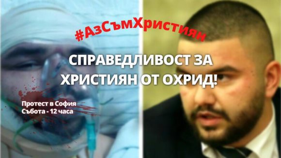 Днес от 12:00 часа българско време, пред сградата на Европейската комисия в София, ще се проведе протест в подкрепа на пребития в Охрид македонски българин. Мотото на протеста е „Справедливост за Християн от Охрид! НЕ на дискриминацията на българи“. Организаторите му обявиха във Фейсбук, че събитието е строго неполитическо и непартийно и че всички желаещи са добре дошли като обикновени граждани.