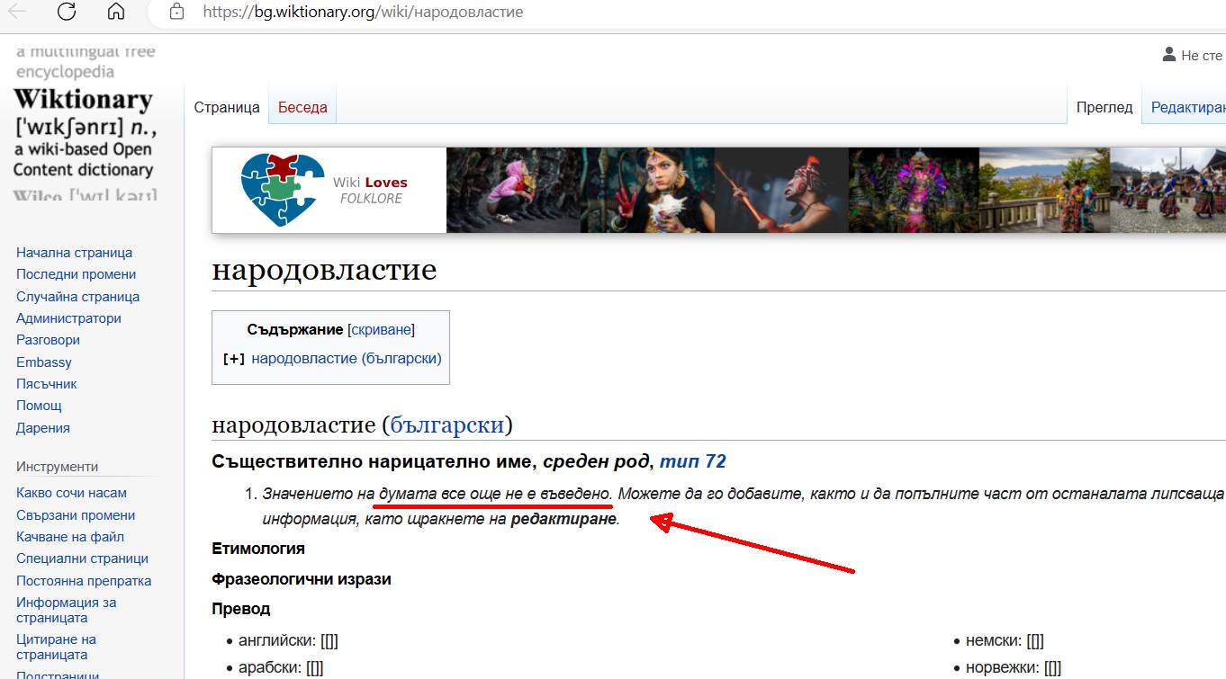 Народовластие (български) – Съществително нарицателно име, среден род, тип 72. Значението на думата все още не е въведено. Можете да го добавите, както и да попълните част от останалата липсваща информация… (вж. линк и снимката долу).