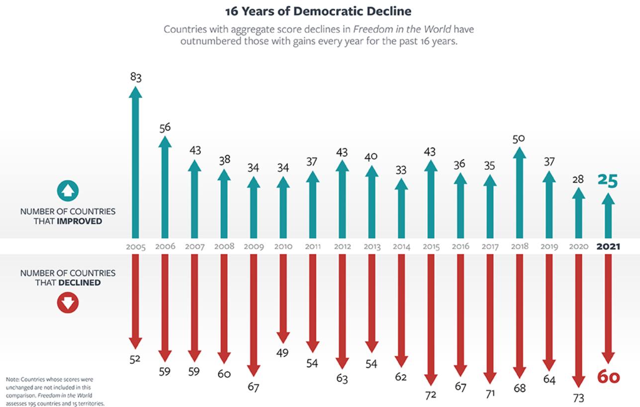 И останалият свят е в криза и все по-недемократичен – доказва го следната таблица от сайта на Фридом хаус: