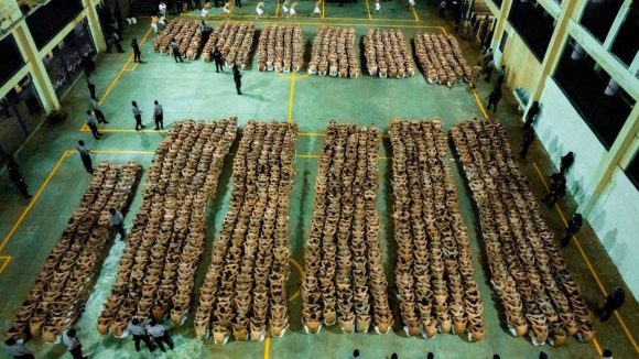 Около 2000 обвинени членове на банди бяха преместени рано сутринта в петък в затвора с капацитет от 40 000 души, смятан за най-големия в Америка.“